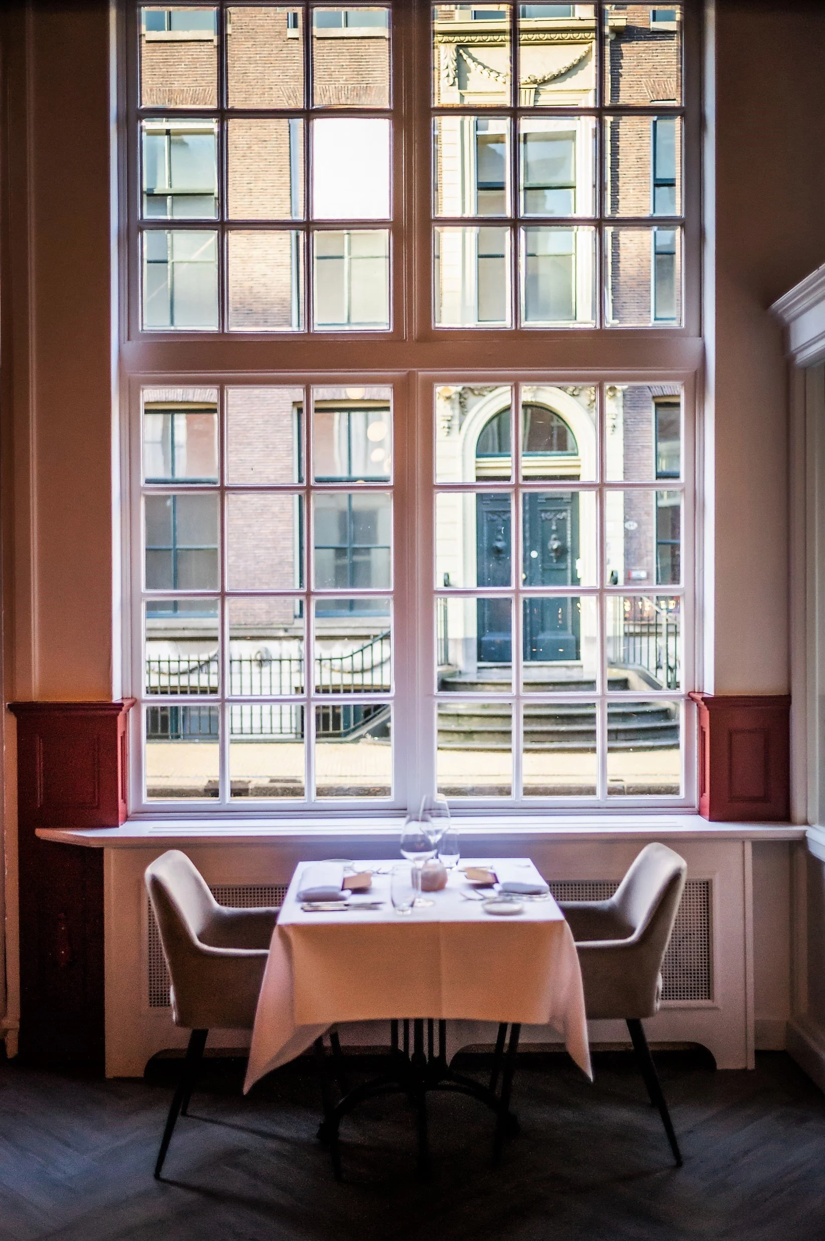 In een decor van ossenbloedrood, een halfopen keuken en zicht op een prachtige binnentuin snoepen wij van brood met gezouten boter en Ierse oesters met citroen, sjalotjes en balsamico bij frisse glaasjes champagne. Het menu daarna begint met tonijn, geserveerd met radijs, lavas, limoen en een dotje (extra bestellen) Imperial kaviaar. Mmm! Ook de tafelgenoot vorkt tevreden van zijn scholletje, met bloemkool, gezouten citroen en kippenjus.