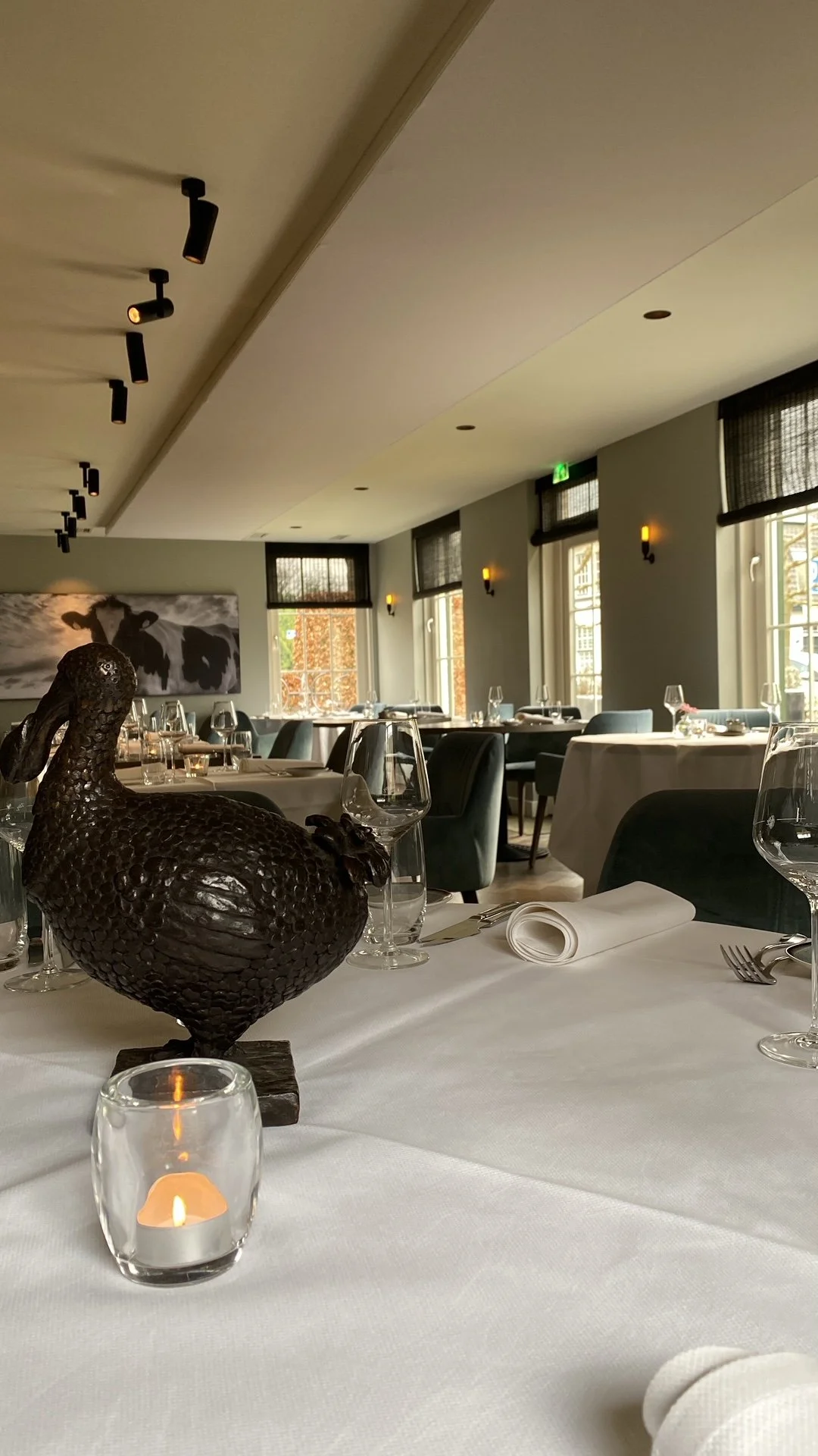 Wij proeven gekonfijte Ibericowang met eendenlever en pompoencrème en een bitterballetje van fazant. En in kruidenolie gebakken snoekbaars met salade van avocado en appel. Bij een aangenaam glas chardonnay uit de Languedoc. De chef serveert daarna een glas roomijs van piccalilly en vanille waarop langzaam gegaarde kalfswang en schuim van Opperdoezers erbovenop. Verrukkelijke smaken.