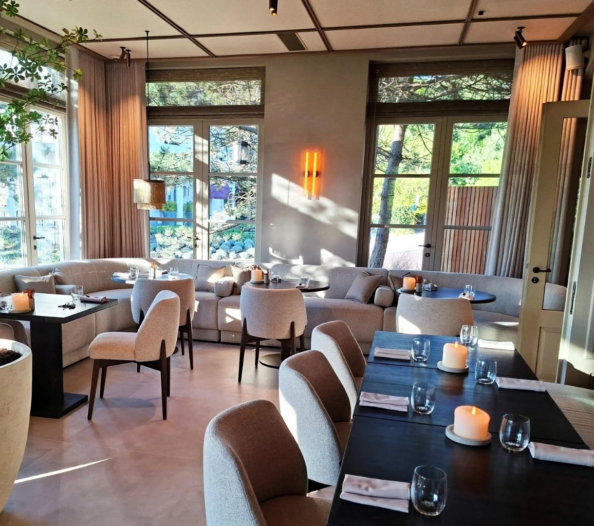 Villa de Duinen is volledig gerenoveerd: het is nu een prachtig hotel-restaurant op de Noordwijkse duinen, warm ingericht. De hoofdkleur is taupe, in alle schakeringen daarvan, en vooral het restaurant - nu Lumé Bistro & Lounge bar geheten - is een plaatje geworden. Ruimer dan vroeger, met goede terrasmogelijkheden en met een mooie kaart.. Stefhan Raggers is al bijna 10 jaar de chef (hij werkte ook in Huis ter Duin) en zijn keukenstijl is licht en speels geworden, gebaseerd op de klassieke Franse cuisine maar met eigentijdse uitstapjes.
