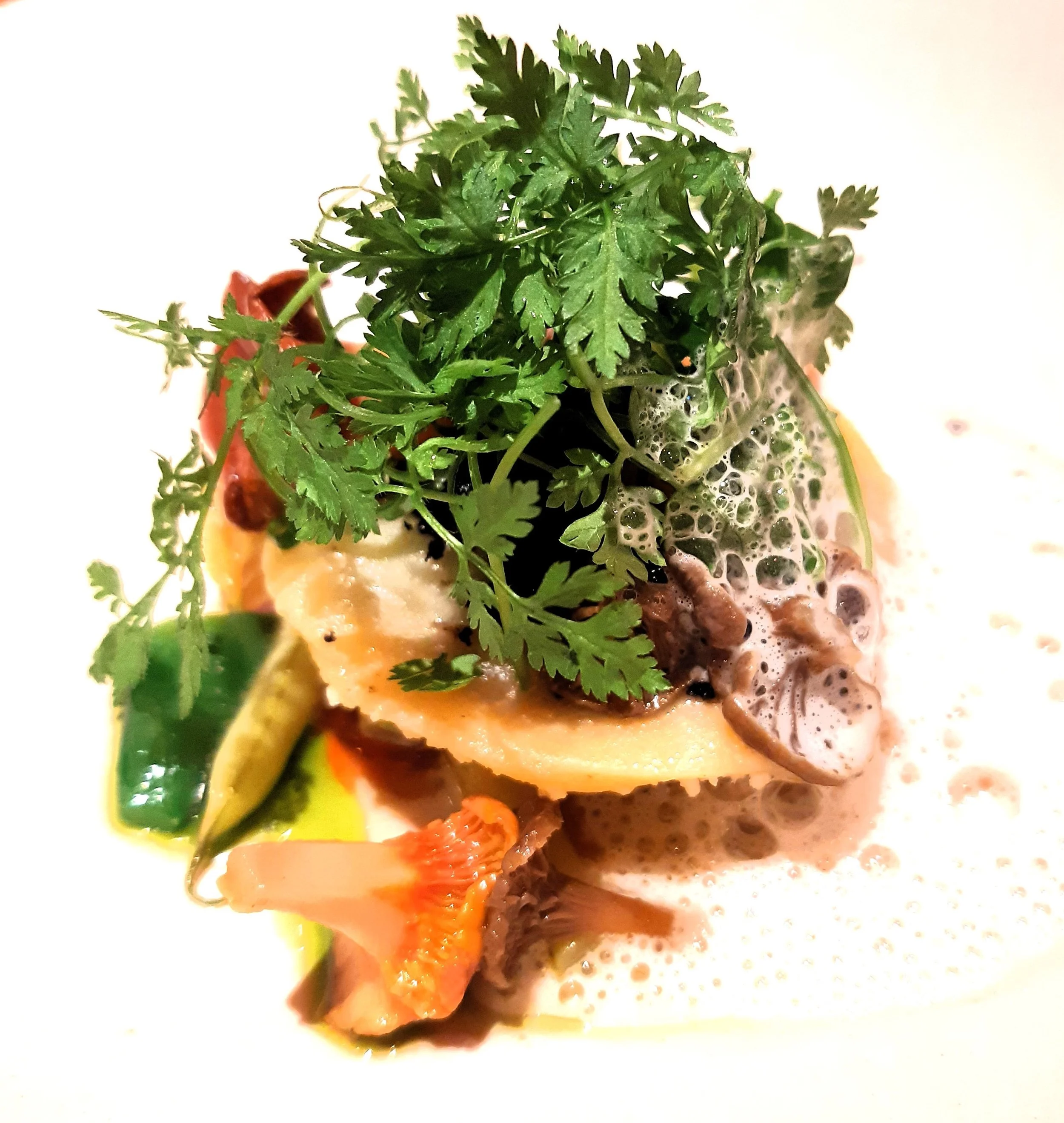Het is een stralende dag, de zon schittert in het bolvormige bouwwerk en wij nemen de lift naar onze lunchbestemming. We hebben geluk, begrijpen we later, want met lunch krijg je nog een kaart terwijl het dinermenu je wordt voorgeschoteld zonder enige inspraak. Een zorgelijke tendens in de Nederlandse gastronomie.